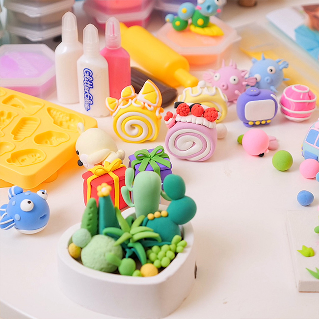 收纳盒×1个,六角杯丝柔轻粘土×24杯,制作工具×4把,教学小册子×1本
